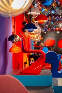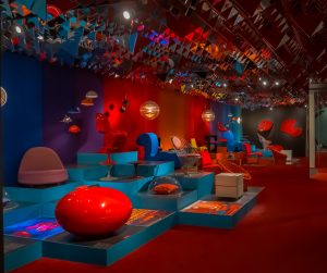Det ikoniske poprum i udstillingen Danish Modern med designs af blandt andre Panton.