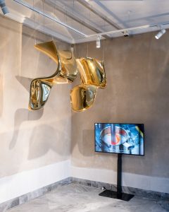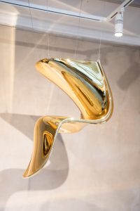 Oplev den eksklusive guldfarvede Panton Chair i i indgangsrummet til museumcaféen FORMAT.